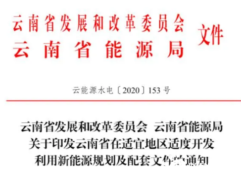 9月30日,云南省發改委、云南省能源局聯合印發《云南省在適宜地區適度開發利用新能源規劃》及配套文件的通知。規劃區域包括昆明、曲靖、昭通、紅河、文山、楚雄6個州(市)的部分區域,規劃風電及光伏發電裝機目標為1100萬千瓦,其中風電800萬千瓦、光伏發電300萬千瓦。規劃建設時期為2020-2021年,規劃目標實現后,云南省2025年綠色能源裝機占比將提升至85%。